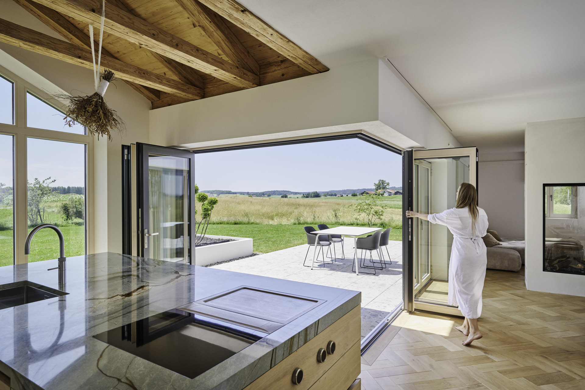 Um Innen- und Außenbereiche sinnvoll zu verknüpfen, eignen sich verschiedene Optionen: Schiebefenster mit besonders schmalen Profilen bieten großzügige, barrierearme Durchgänge, während Glas-Faltwände besonders weite, fast vollständig geöffnete Fassaden ermöglichen. Beide Varianten eröffnen ganz eigene Möglichkeiten, Übergänge zu Terrasse, Balkon oder Garten architektonisch vielseitig zu gestalten – sei es für den offenen Wohn-Essbereich, den nahtlosen Zugang zur Terrasse oder den geschützten Balkon in der Stadt.