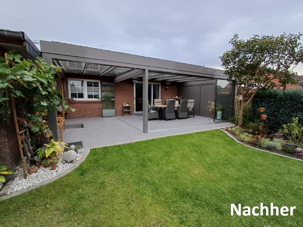 Unsere Kunden aus Wesendorf hatten einen Wunsch: Ihre Terrasse sollte zum neuen Lieblingsplatz im Garten werden – großzügig, modern und komfortabel! Die alte Überdachung aus Holz und Wellplatten musste weichen, um Platz für eine hochwertige, lichtdurchflutete Wohlfühloase zu schaffen.